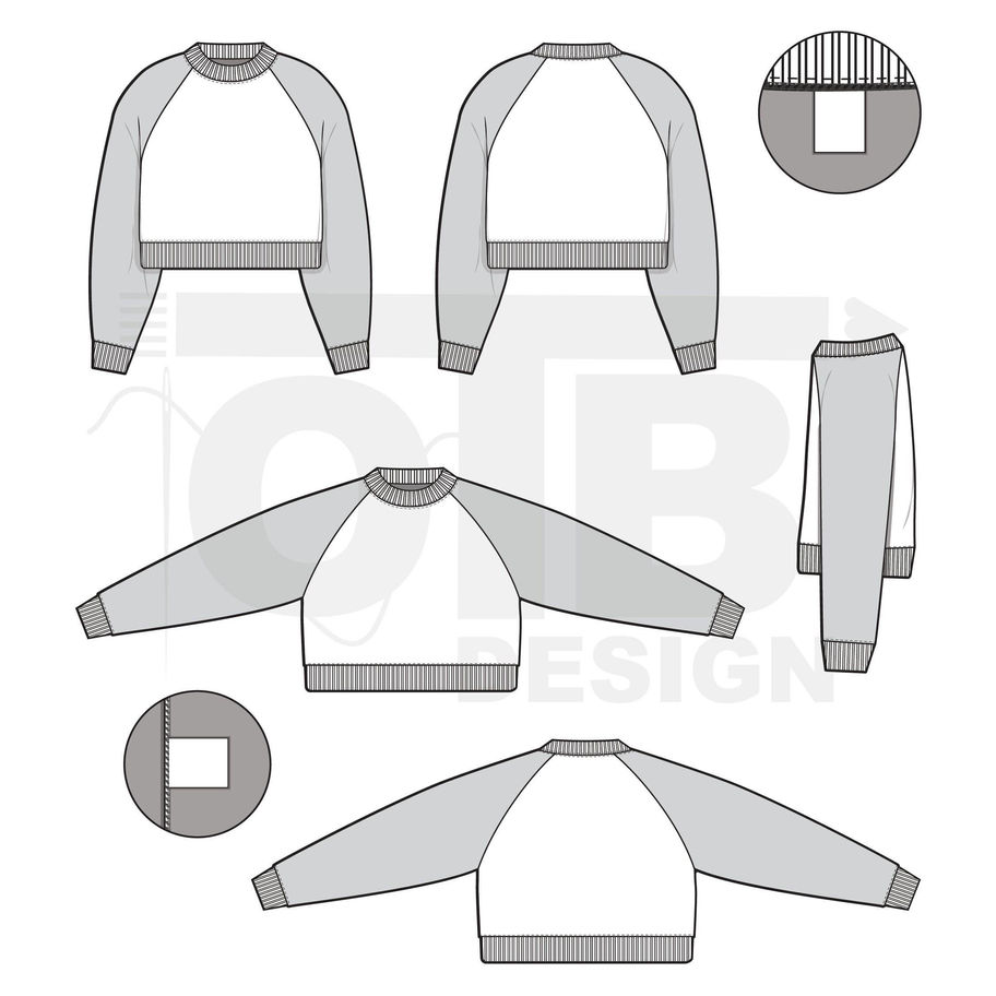 Cropped Mock Neck Raglan Sweatshirt Flat Vector Technical Drawing Streetwear