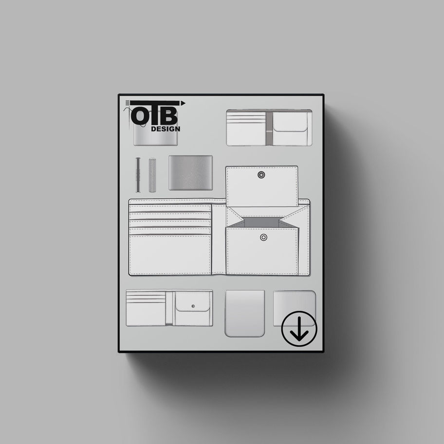 OTB Bifold Wallet With Coin Pocket Vector Flat Technical Drawing Illustration
