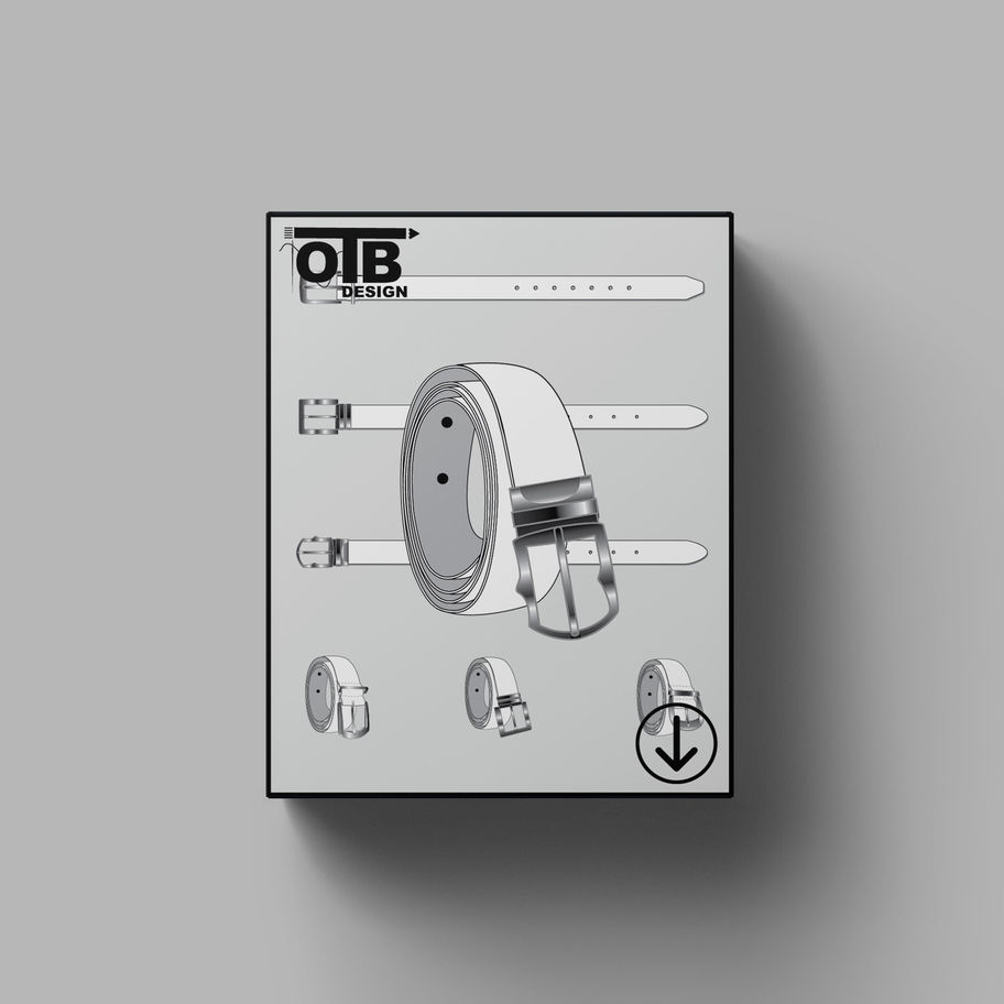 OTB Classic Leather Belt With Metal Loop Vector Flat Technical Drawing Classic