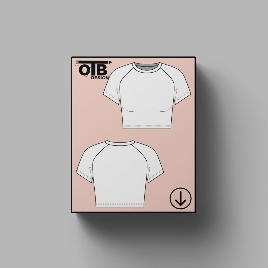 OTB Crew Neck Short Sleeve Raglan Crop Top Vector Flat Technical Drawing