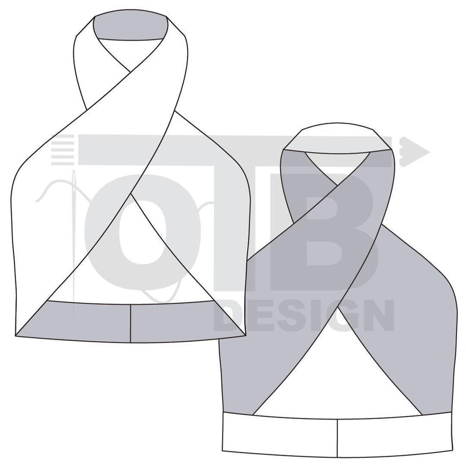 OTB Halter Twist Lace Up Bikini Top Vector Flat Technical Drawing Classic Blank