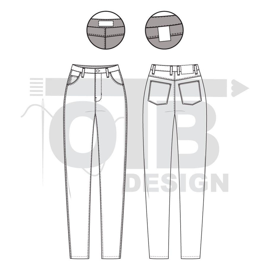 OTB High-Rise Mom Jeans Vector Flat Technical Drawing Illustration Classic