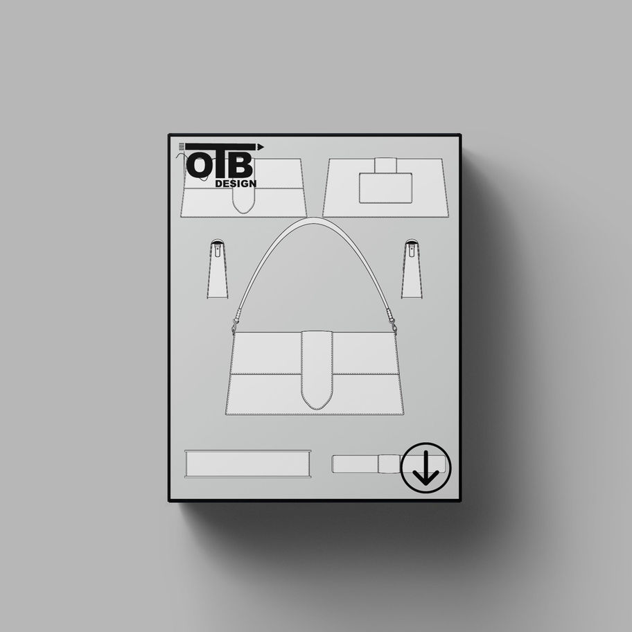 OTB Long Trapeze Shape Flap Handbag Vector Flat Technical Drawing Classic Blank