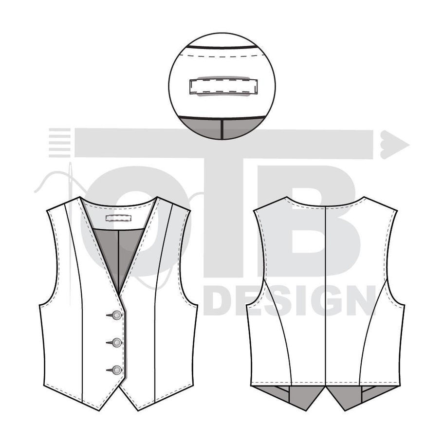 OTB Zip Bomber Vest Vector Flat Technical Drawing Illustration Classic Blank